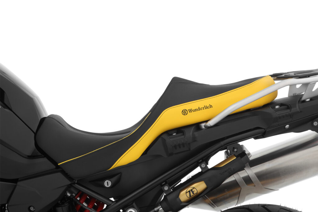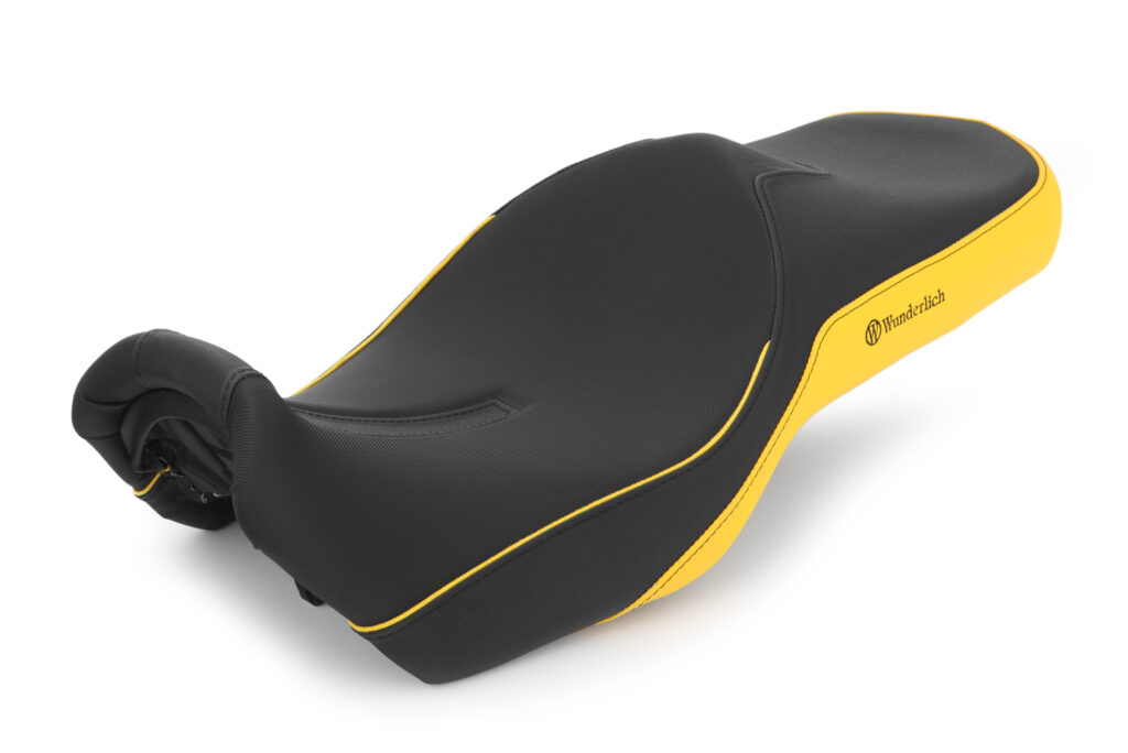 Nuestros asientos proporcionan una sujeción perfecta y un control activo y seguro cuando se conduce al límite, especialmente al frenar: ¿a quién no le ha pasado?: al frenar con fuerza, el acompañante se desliza repentinamente desde detrás, haciendo que tengamos que apoyar los pies sobre el suelo y, al mismo tiempo, incluso tener que girar el manillar para sortear una situación crítica. Estos sustos al frenar ya son cosa del pasado gracias al contorno de apoyo que ha diseñado Wunderlich. El contorno 3D es innovador y ergonómico y se encarga de eliminar los puntos de presión sobre el muslo interior mientras se está parado frente a un semáforo.
