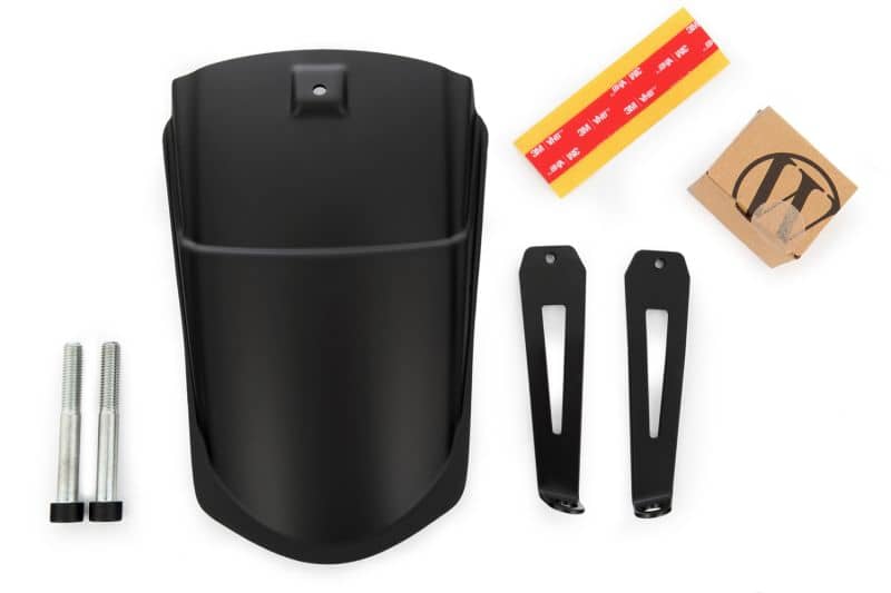 Prolongación del guardabarros delantero de 155 mm Protección completa para el conductor y la motocicleta Protección fiable y probada contra agua de salpicadura, suciedad de la carretera y la contaminación resultante Protección efectiva contra el impacto de piedras para el motor, el radiador y la batería Fácil montaje. Accesorio completo con material de fijaciónDatos técnicos