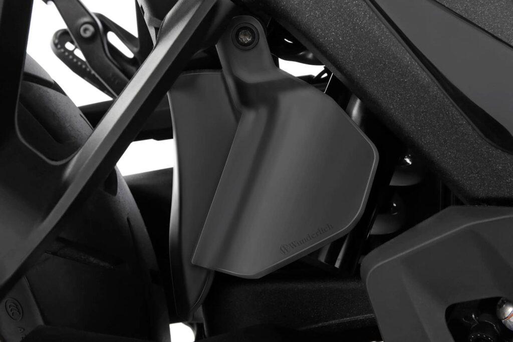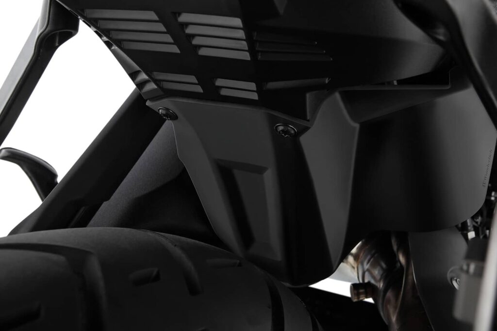 Este guardabarros interior protege el amortiguador, soporte de amortiguador, basculante y colector. Captura y redirige de manera confiable las salpicaduras de agua. Este útil componente reduce y protege a los conductores y pasajeros de las salpicaduras y la suciedad de la carretera en la zona del pie y la espinilla.