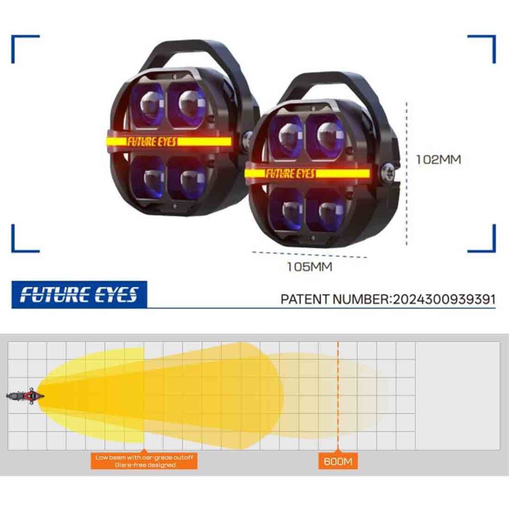 - 🌟【Óptica premium y diseño enfocado en la seguridad】: las luces de conducción de motocicleta Future Eyes cuentan con lentes ópticas de alta transmitancia que garantizan un patrón de haz concentrado y uniforme, mejorando significativamente la visibilidad para la conducción nocturna. Diseñadas con un soporte de montaje universal de 360°, estas luces antiniebla para motocicleta son fáciles de ajustar para una iluminación óptima en carreteras urbanas o senderos todoterreno. La tecnología de línea de corte de grado automotriz controla con precisión la distribución de la luz para evitar el deslumbramiento del tráfico que se aproxima, lo que las convierte en luces antiniebla LED ideales tanto para viajes urbanos como para viajes de aventura remota.